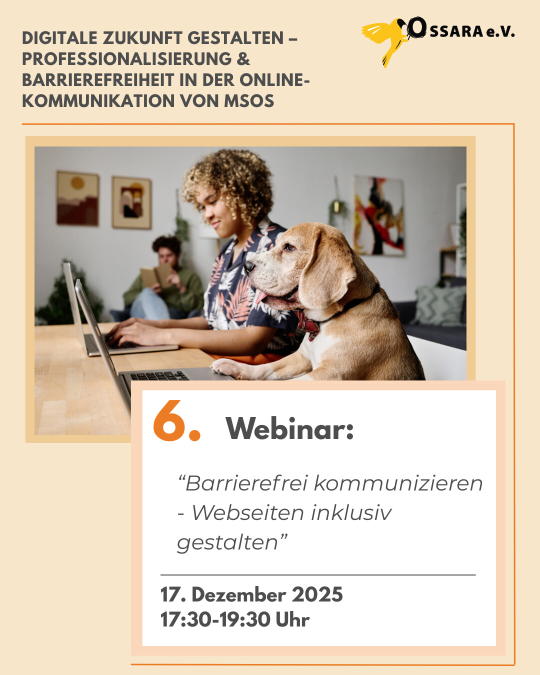 Der 6. Workshop unserer Reihe „Digitale Zukunft gestalten - Professionalisierung & Barrierefreiheit in der Online- Kommunikation von MSOs“.